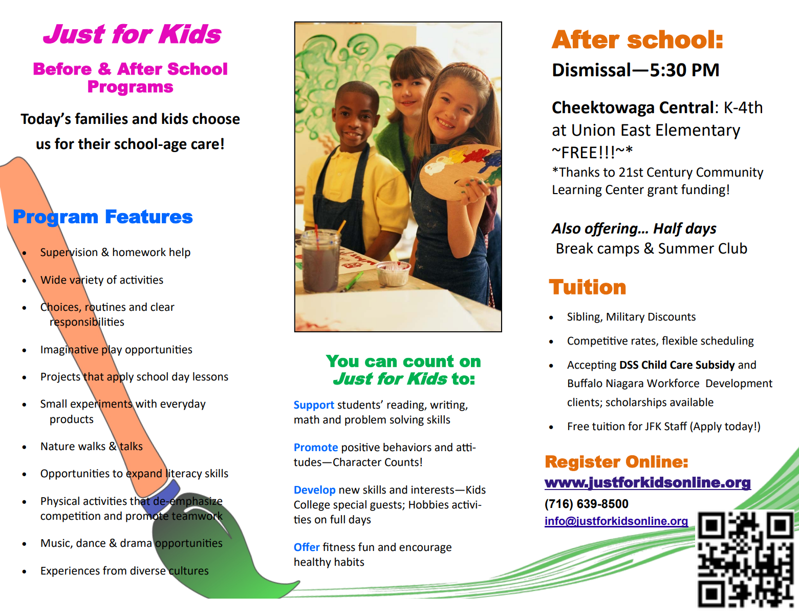 Just for Kids offers after school care for students attending Union East Elementary School in Cheektowaga Central School District, with engaging activities, enrichment, and school break and summer camps throughout the year.