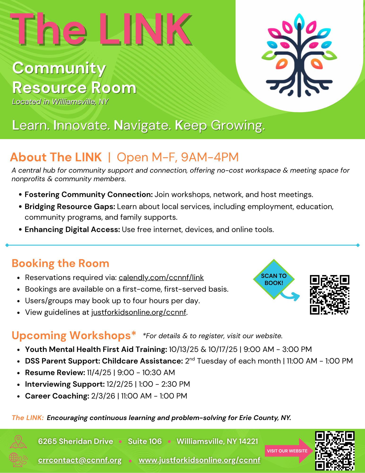 The LINK Community Resource Room is a welcoming space where individuals can access essential resources, support services, and community connections. Whether you need help navigating local programs, finding basic necessities, using WIFI to complete job applications, or exploring opportunities for personal growth, The LINK is here to connect you to what you need most.