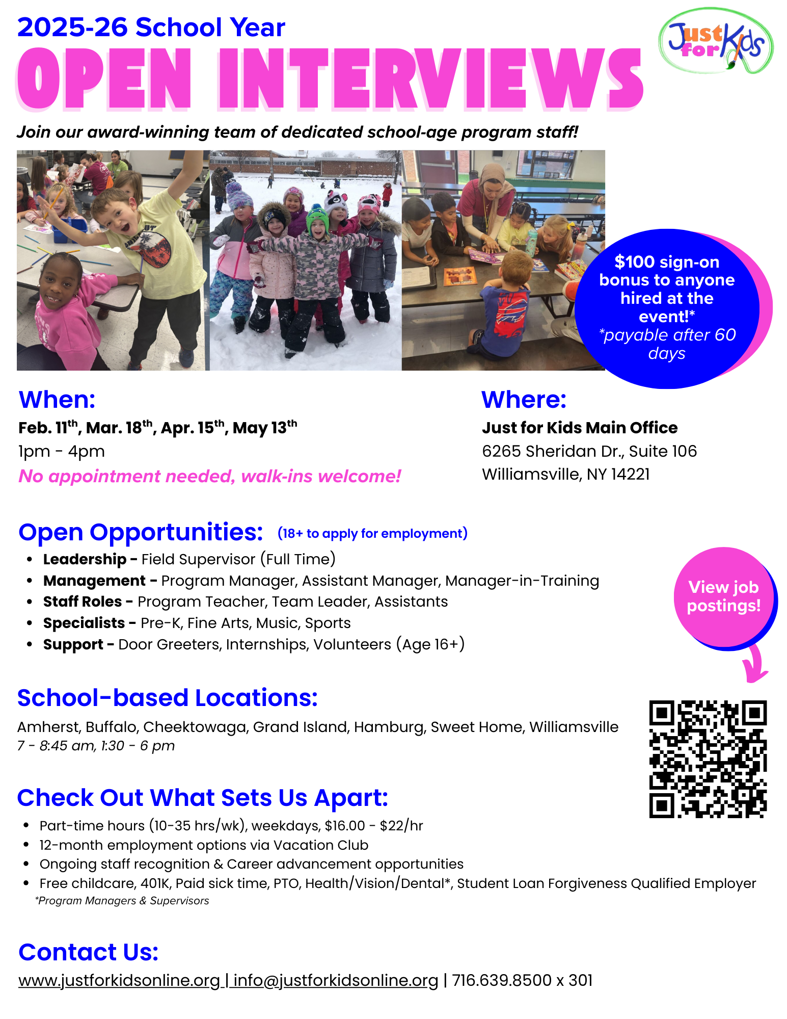 We have a variety of positions open across our 24 school-based programs for both school year and summer!